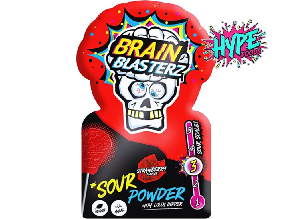 Brain Blasterz - Extra Kyslý Prášok s Lízankou (Sour Powder Dip) 10g JAHODA