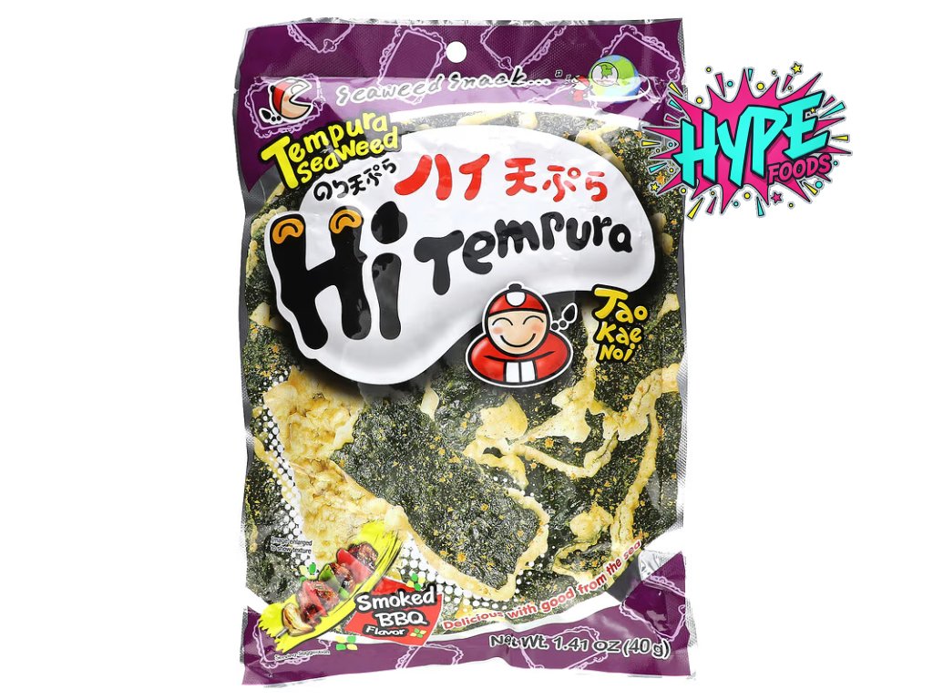 Priprav sa na chuťový úlet s Tao Kae Noi Tempura Smoked BBQ! Zober chrumkavé morské riasy, obaľ ich do ľahučkého tempura cestíčka a pridaj intenzívnu, sladko-slanú chuť údenej BBQ omáčky
